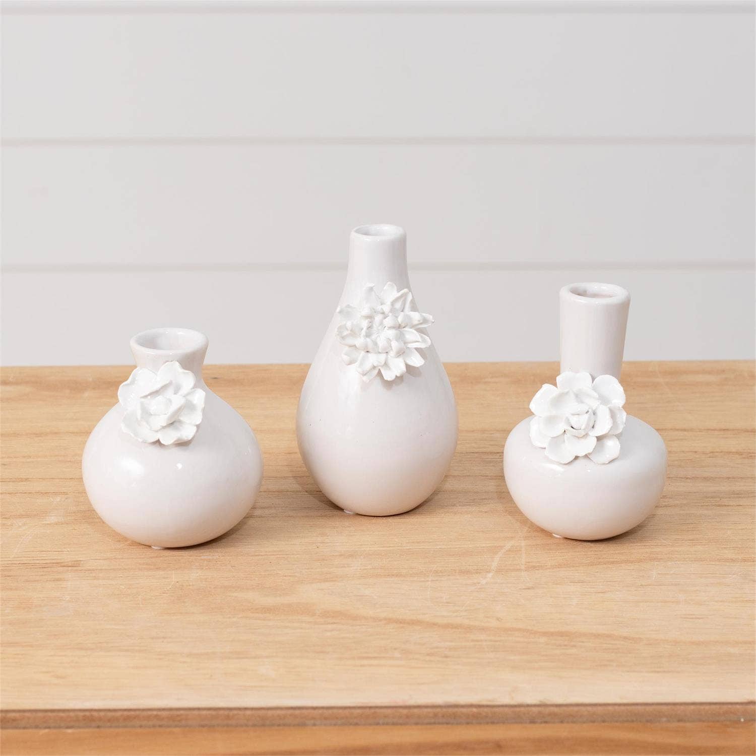 Bud Vases With 3D Floral Detail (Set Of 3)