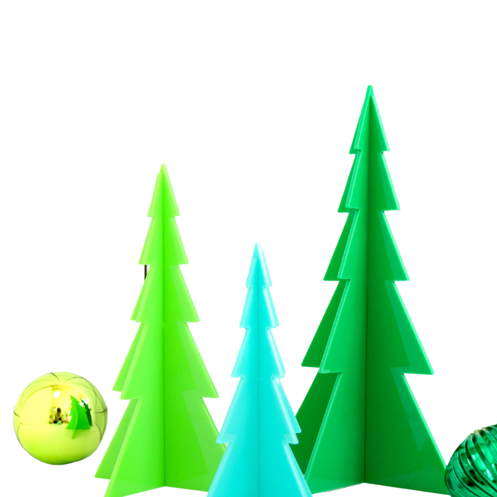 Green and Blue Acrylic Tree Christmas Decor - Set of 3