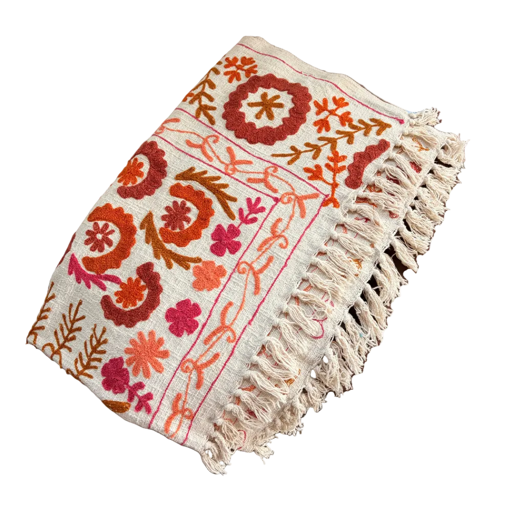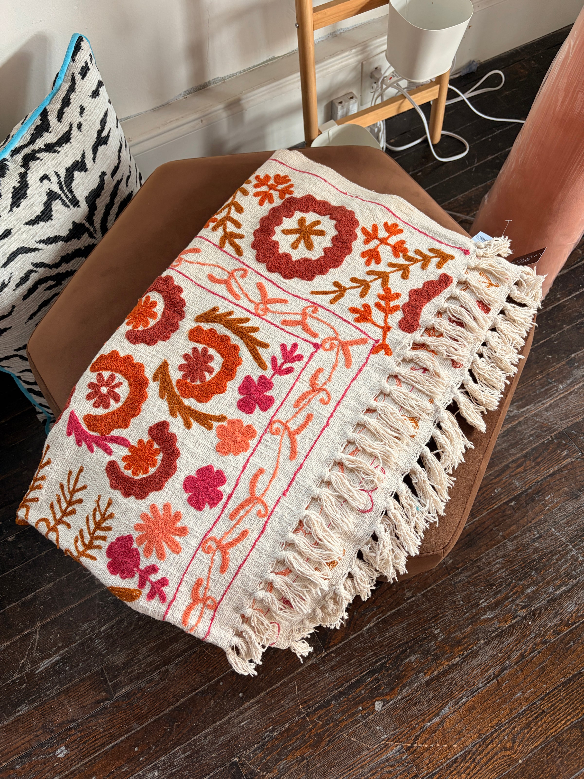 Handloom Slub Cotton Throw with Suzani Embroidery